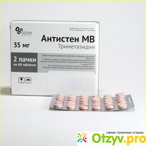 Антистен является фармакологическим препаратом, который относится к антигипоксантным средствам. Выпускается в виде таблеток покрытых оболочкой. Главное действующее вещество препарата это гидрохлористый триметазидин, который содержится в одной таблетке 20 миллиграммов.
