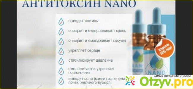 Производители говорят, что их препарат Антитоксин нано делает следующее: