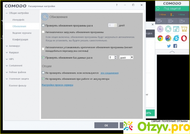 В настройках можно посмотреть интерфейс (в основном всякие сообщения отключить), параметры обновления и конфигурации. Настроить Антивирус и Файрвол, И другое. Он у меня стоял на Windows XP SP3, сейчас я поставила лёгкую 7-ку. Всё работает. Пакет функций внушительный.