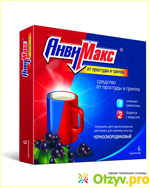 Вкус нейтральный, чуть лимонный. Пить надо не больше трех раз в сутки. Заявлено, что эффекта хватает на 4 часа. Да, так оно и есть. Три дня пила, а на четвертый температура уде была не такая высокая, сбивать не требовалось. На пятый день все полностью прошло. Удобно, что продаётся оно в каждой аптеке и выпускается без рецепта. Это лучшая альтернатива дорогого Терафлю, который за 10 пакетиков стоит тысячу рублей. Могу смело рекомендовать Анвимакс