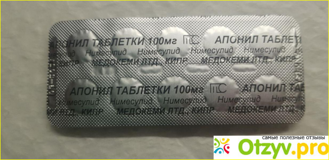 Препарат Апонил относится к категории нестероидных противовоспалительных средств (НПВС), активным веществом является нимесулид. Кстати, Нимесулид можно приобрести в оригинальной форме, также он входит в состав многих нестероидных препаратов, также выпускается в различных формах. Апонил же выпускается в форме таблеток для приема внутрь, дозировка по 100 мг активного вещества. Обладает противовоспалительными, анальгезирующими и антипиретическими свойствами.