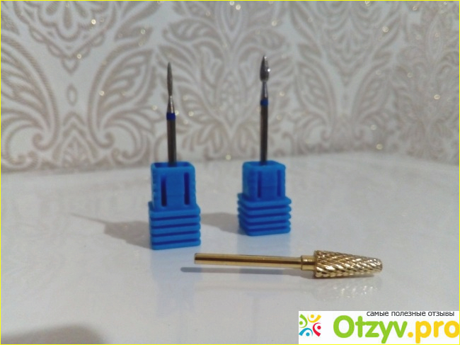 Больше никакого воздействия растворителей, запаха, время снятия снизилось в три раза, с 1-1,5 часа до 30 минут. В комплекте имеется набор фрез, но они не очень хорошего качества, я докупила твердосплавную фрезу для снятия гель лака и пару фрез для аппаратного маникюра.
