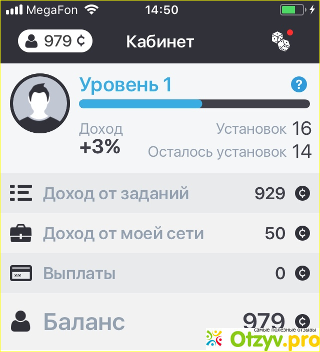 суть заработка основывается на установке мобильных приложений, оставления положительного отзыва, запуск время от времени(некоторые задания до 4 дней длятся, часть сразу выполняются),. Внутренняя валюта-центы(10 центов=1 рубль). Пользуюсь приложением две недели, заработок вышел 250 рублей, в свободное время на работе, сидя в курилке, вообщем когда заняться нечем, то почему не заняться простыми квестами. никакой сложности. вывод средств от 25 рублей, есть реферальная система. если есть желание испробовать, мой промокод chemekov , получите при вводе 5 рублей на счет. также в этой программе существует прокачка уровней в зависимости от количества установленных приложений, уровень дает бонус к доходу от трех процентов до десяти. также доход идет и от партнерки, 20 процентов с приглашенного.