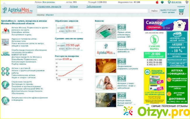 Главным достоинством любых интернет-аптек является большой ассортимент. Ни в одной розничной аптеке не будет такого выбора товара, какой он представлен на сайте. На сайте Аптека. ру можно найти все самые популярные лекарства. а также те позиции, которые редко встречаются в любых других аптеках. По мимо этого на сайте можно посмотреть подробную информацию о каждом препарате, познакомиться с правилами его приема и даже почитать отзывы других людей. Кстати по отзывам можно решить хорошее это лекарство или стоит выбрать что-то другое.