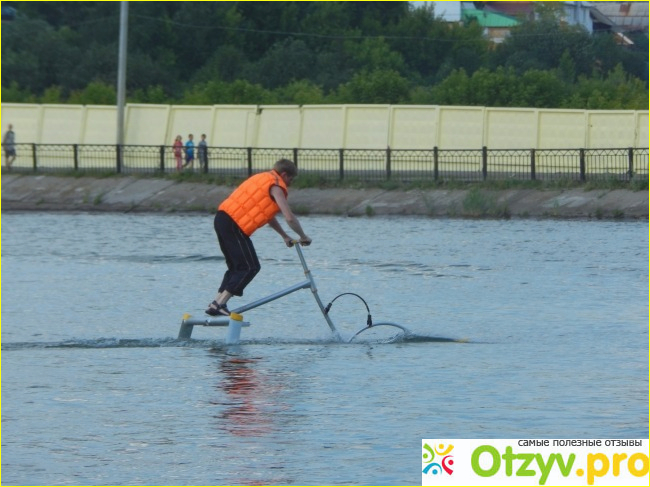 Сама конструкция этого водного самоката или велосипеда очень интересная. Сделана она из какого-то легкого сплава, который не тонет в воде. В прошлом году мы пробовали кататься на такой чудо-технической мысли человека))), скажу честно, получилось довольно не сразу. Здесь нужна определенная сноровка и катающийся должен обладать хорошим чувтвом равновесия.