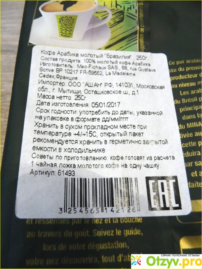 Не часто в наших магазинах можно встретить из Франции. Я была очень удивлена, увидев его в магазине АШАН. Кофе «Бразилия».