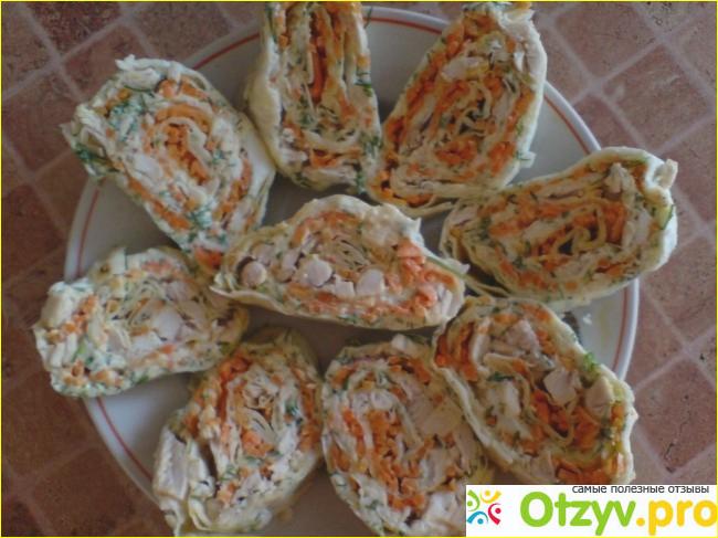 Преимущества теста в том, что с ним можно экспериментировать до бесконечности, и получать совершенно неожиданные по вкусу блюда. Мне к примеру, нравится рулет из лаваша с начинкой с крабовыми палочками, твёрдым сыром, и майонезом. Когда покупаю тесто, его хватает на приготовление трёх рулетов на пару, а после, их порционно режут, или же жарят треугольниками, которые получаются нежными и хрустящими.