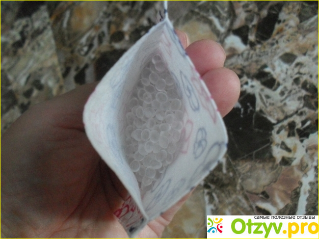 Я не могла не заглянуть в подушечку. В нее положили гелевые шарики, похожие на икру лососевых.