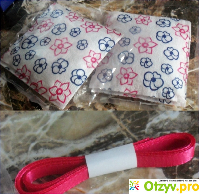 В небольшой коробочке я нашла всего четыре ароматизирующие подушечки и кусочек тесьмы. Зачем тесьма? Она лишняя.