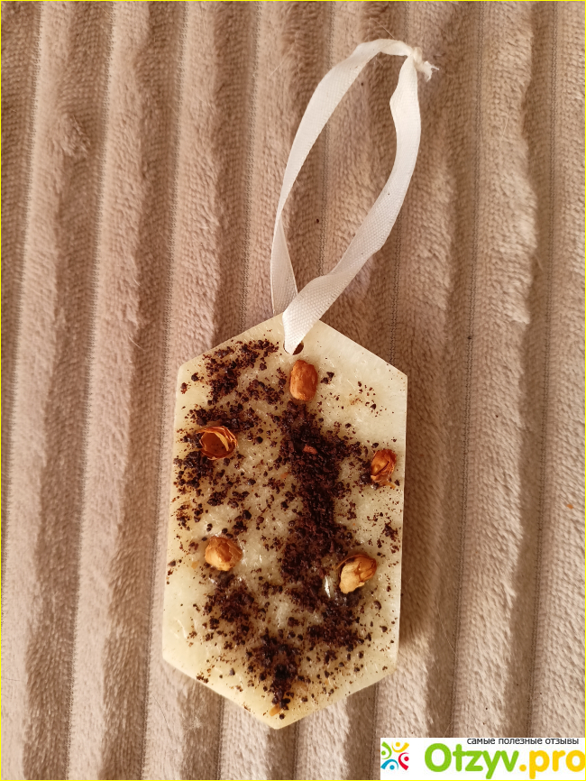 Для размещения в шкафу предусмотрена лента петля, которая уже вот как несколько лет, справляется со своей функцией держателя саше. Я довольна. Аромат просто головокружительный! Что-то вроде кофе и тирамису: нежно, аппетитно, не удушающе, деликатно.