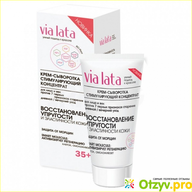 Крем-сыворотка для лица и век стимулирующий концентрат 35+ VIALATA мне нравится тем, что это уникальное и разноплановое средство, так как можно использовать как для лица, так и под кожи век. Сам состав так же уникальный, потому что он имеет стимулирующий концентрат, поэтому сразу же после нанесения начинает бороться против всех признаков старения такого рода как уменьшение тонуса, появление морщин, дряблость.