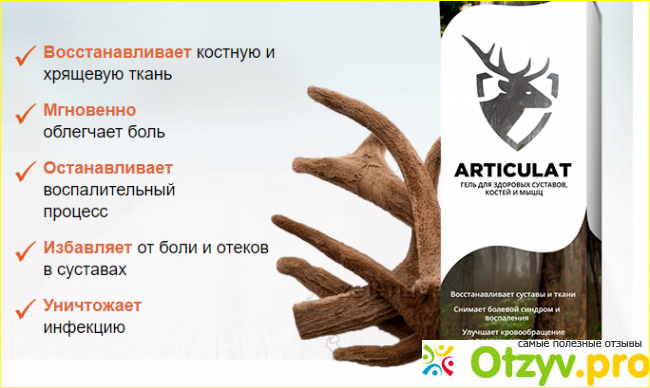 Главный упор на что делает производитель при продаже своего продукта, а именно крема Артикулат - это конечно же его натуральный состав и необычные компоненты. В составе крема можно увидеть действительно множество натуральных компонентов. Ведь нельзя на коробочке от средства нарисованы оленьи рога. Ведь в составе крема находится компоненты, который называется панты алтайского марала. Это вещество использовалось и раньше в кремах для лечения воспаления в суставах. И почему-то всегда эти средства продавались через интернет.