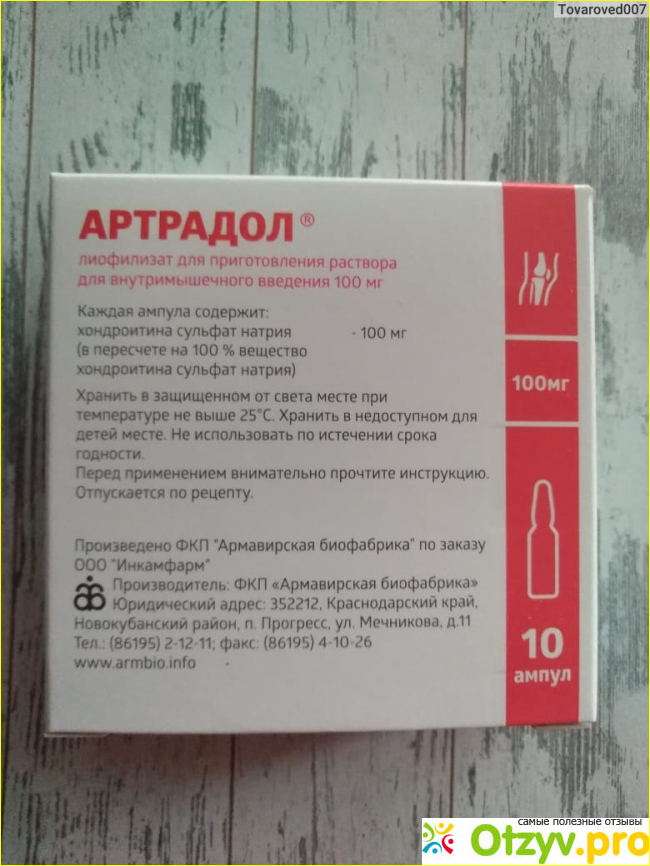 Как нам стало известно, хондропротекторы в составе содержат сразу два компонента, они и являются строительным материалом для наших суставов. Было бы конечно лучше приобрести лекарство с этими двумя веществами, таким образом эффективность и польза достигла бы максимального результата. Но, так как Артрадол имеет только одно вещество, он конечно способен оказать положительное воздействие на костную и соединительную ткань организма, но так сказать 50/50.