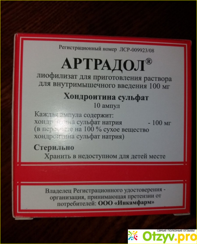Она имеет пористую структуру. Главное действующее вещество препарата это сернокислый хондроитин или сульфат-хондроитин в виде натриевой соли. Выпускается средство в виде лиофилизата, из которого готовится раствор для внутримышечного инъекционного введения. Одна ампула препарата содержит 100 миллиграммов активного соединения.