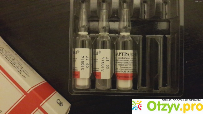 Лекарственный препарат в виде инъекций при суставных заболеваниях по 0,1 грамма через день. Перед тем как ввести лекарственный препарат, его необходимо растворить одну ампулку с данным раствором в одном миллилитре воды и вводить аккуратными движениями через день. Лекарственный препарат Артрадол назначают курсом на два месяца. Перед тем как ввести укол, его необходимо некоторое время разболтать. При введение в ягодицу, оно конечно немножко болезненное, то можно потерпеть для такого случая. По сравнению с другими лекарственными препаратами, котоырми я кололась, то Артрадол несколько хуже рассасывается. Сколько я у людей спрашивала, которые делали уколы данным лекарственным препаратом, у многих наблюдалось улучшение по разному- кому то лучше стало с третьего укола, кому то после с тринадцатого, а мне стало легче немножко уже после десятого укола. Но я всё равно продолжала проходить курс лечения, так как во-первых, это обязательно, а во-вторых, я хотела чтобы боли в суставах полностью исчезли. Прошла я курс лечения, хочу сказать что лекарственный препарат Артрадол очень сильно мне помог. Только благодаря ему, я почувствовала новую жизнь. Он помог моим суставам очень хорошо. Вообще, по отзывам и слухам, я узнала что после того как люди проходили курс лечения, результат сохранялся на протяжении длительного периода. В плане себя я пока что ничего к сожалению не могу сказать, на сколько мне его хватит. Посмотрим. Если что, отпишусь здесь :) Если вам потребуется пройти повторный курс , то необходимо проконсультироваться с лечащим врачом, который назначит вам определённую дозировку и срок приёма препарата.