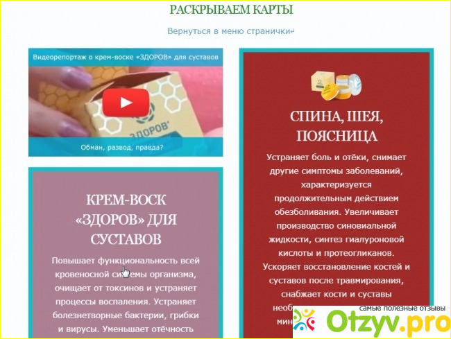 В левой стороне сайта мы можем ознакомиться с информацией о купоне на приобретение крема-воска "Здоров". Причем крема бывают разные: