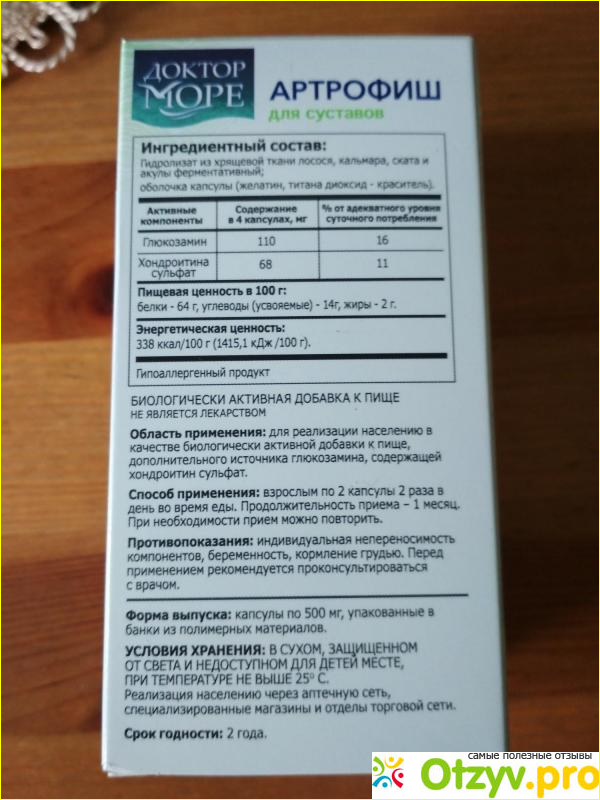 Артрофиш является биологически активной добавкой к еде, в которой содержится сульфата хондроитин и ее рекомендуется принимать как дополнительный источник моносахаридов глюкозаминов. Добавка выпускается в виде капсул, которые имеют специфический рыбный запах.