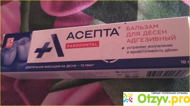 Стоматологический бальзам Асепта продается в миниатюрной десятиграммовой граммовой тубе. Производитель Российский - фармкомпания «Вертекс». Надо сказать, что расходуется бальзам экономично и хватает на много применений. Бальзам изготовлен на основе вазелинового масла и достаточно неплохо крепится и налипает на деснах.