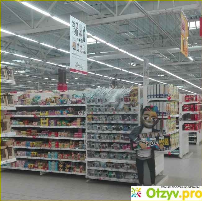 Во-первых, гипермаркет Ашан по своим габаритам весьма вместительный, потому что кроме продуктов, здесь можно также купить и товары для бытового использования, а также одежду и обувь.