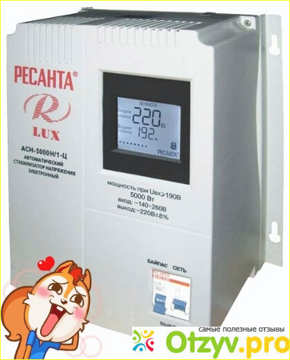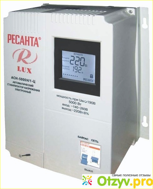 Я роскажу о стабилизаторе напряжения фирмы Ресанта, а именно Асн 5000 1 ц. Все, что нужно сделать, делая выбор стабилизатора , это определиться с несколькими его опциями. Во первых однофазный стабилизатор напряжения Ресанта АСН 5000/1-Ц используется для стабилизации входного напряжения и конечно же защиты електро бытовых приборов от высоких скачков напруги с общей мощностью до 5 кВт. Во вторых в стабилизаторе предусмотрено аварийное отключение от неправильной работы сети с большим перападом входящего тока и защита от перегрева. В третих устройство оборудовано микропроцессором, без которого автоматика не автоматика. Встроен цифровой индикатор напряжения, информационный дисплей для визуального контроля, отображающий величины напряжения. ACH-5000 отличноне работает не искажая формы сигнала. Стабилизатор отключит вашу технику если выходное напряжения стабилизатора достигает 260V, что дает гарантию на высокую безопасность, может сохранять рабочее состояние при кратковременных нагрузках.