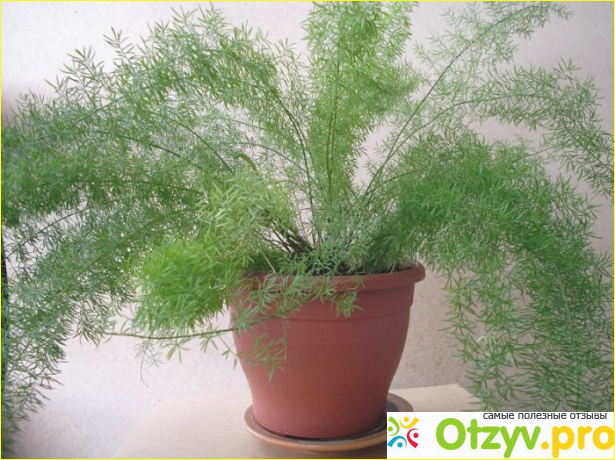 Аспарагус не терпит прямых солнечных лучей, только рассеянные. Если поставить на открытый солнцепек, то растение пожелтеет и засохнет. А так же нельзя его ставить вблизи отопительных приборов, будет точно такой же результат. Размножение происходит за счет мелких семян.