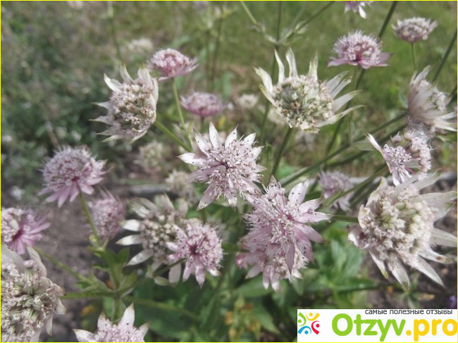 Растет астранция очень быстро, и в зависимости от плодородия почвы кусты бывают разных размеров. В среднем по высоте она достигает 50 сантиметров, но некоторые ветви бывают и по метру в высоту. Отлично созревают семена и очень долго держатся в семенных коробочках. Собирать их одно удовольствие. Они по размеру напоминают петрушку.