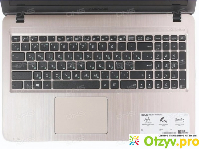 Фирма Asus всегда отличалась не только надежностью своих ноутбуков, но и красиво оформленным видом. Данный аппарат имеет прочный и легкий корпус, выполнен из пластика, его вес 1,9 кг. Также он оборудован усб портами 3,1 , оптического привода нет. Клавиатура сделана цельная, поэтому при нажатии не прогинается.