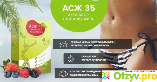 Это абсолютно натуральное средство, которое совершенно безопасно, так как имеет очень хороший и правильно подобранный состав. Многие женщины отзываются о нём негативно, так почему же так? Попробуем в этом разобраться. АСЖ 35 - это активатор сжигания жира, который имеет определённые свойства и свои особенности, потому как каждый входящий компонент воздействует на улучшение обменных процессов, при этом ускоряет механизм сжигания лишних липидов. В состав входят витамины и минералы, а также клетчатка, которые и способствуют расщеплению жировых клеток, но и в будущем не дадут возможности им накапливаться.