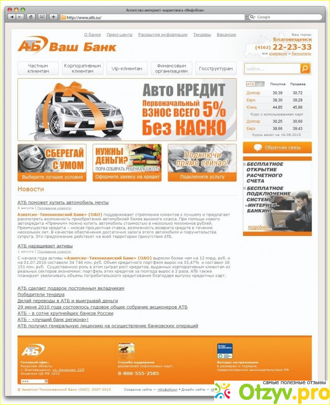 Здраствуйте. Хочу рассказать вам о банке АТБ (АЗИАТСКО -ТИХООКЕАНСКИЙ БАНК). Как всегда в каждом банке, есть свои плюсы и минусы.