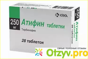 Одним из средств, которым пытались вылечить грибок были таблетки " Атифин". Их прописал врач дерматолог. До этого муж уже принимал другие таблетки. Грибок проходил, но спустя несколько месяцев появился вновь.