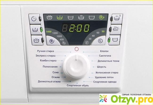 На фото видно, имеется панель управления техникой. Он электронный, современного плана. Дисплей сигментный. Очень помогает в управлении. У мамы машина, в ней нет дисплея. Довольно не удобно, не понять сколько времени осталось до завершение программы. Я привыкла не выходить из дому, пока не вывешу белье. Мало ли, может белье закрутит в один моток, выдаст ошибку, придется открывать дверцу, поправлять и заново запускать работу.