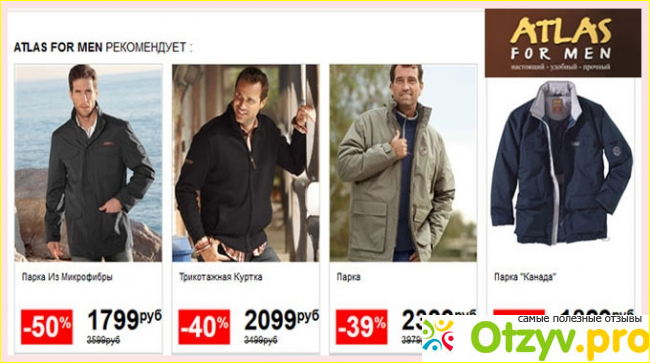 На официальном сайте фирмы, на самой главной странице можно увидеть топовые предложения — одежду, которая предлагается по специальной скидочной цене. Конечно, как правило такие предложения пользуются особенным спросом — хорошее качество + весомая скидка — равно, как минимум, приятная и долговечная покупка. А как максимум — стильный внешний вид мужчины.