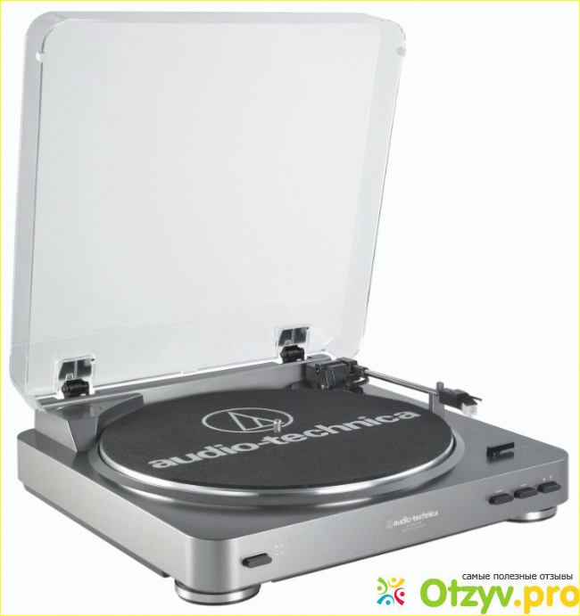 Опорный диск Audio-Technica AT-LP60 USB изготовлен из алюминия и имеет нестабильность вращения менее 0,25%, что является очень неплохим показателем для модели начального уровня. Аппарат оснащен встроенным фонокорректором, сигнал с которого можно подавать непосредственно на линейный вход интегральных усилителей или ресиверов.