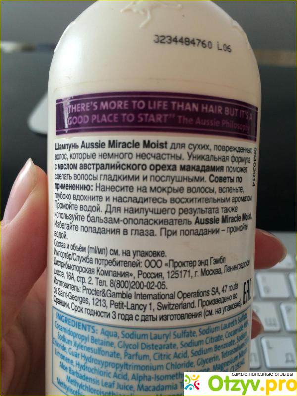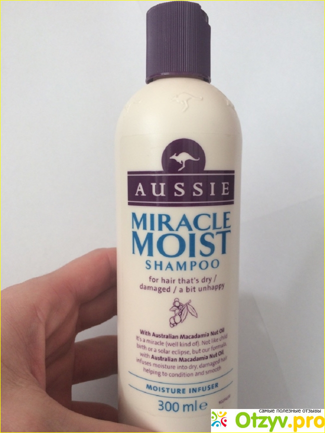Шампунь предназначен для волос, которые, как указывает производитель, «изнывают от жажды». Шампунь Aussie «Miracle Moist» эффективно питает сухие, ломкие, поврежденные волосы, возвращая им жизнь. Все это благодаря его инновационной формуле, основным действующим веществом в которой является австралийский орех макадамия. Между прочим, один из самых дорогостоящих в мире орехов, так как содержит самое больше количество полезных человеку питательных масел.