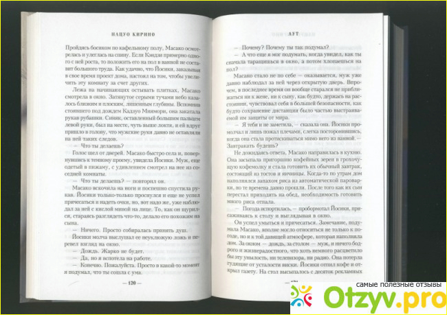 Если брать авторский стиль, язык, психологичность, то «Ауту» вполне можно поставить пятерку. На фоне современных бездарных писулек, произведение хочется читать. Но вот что касается национальных особенностей, то повторюсь – наверное, никогда не пойму и не буду симпатизировать азиатским литературным персонажам. В книге нет ни одного мало мальски симпатичного в плане эмоций героя. Все погружены в себе, варятся в собственных проблемах, а любого незнакомого человека воспринимают, как американского шпиона. Отдельная тема – сцены с расчлененкой. Даже не подозреваю, как это читали чувствительные люди, очень уж натуралистично и дотошно автор все описывает. Еще один момент – садистские наклонности некоторых персонажей. Причем поданы они под таким соусом, что герою прямо сочувствуешь. Ну неправильно это, товарищи! Маньяк и психопат – это маньяк и психопат, а не непонятая обществом личность…