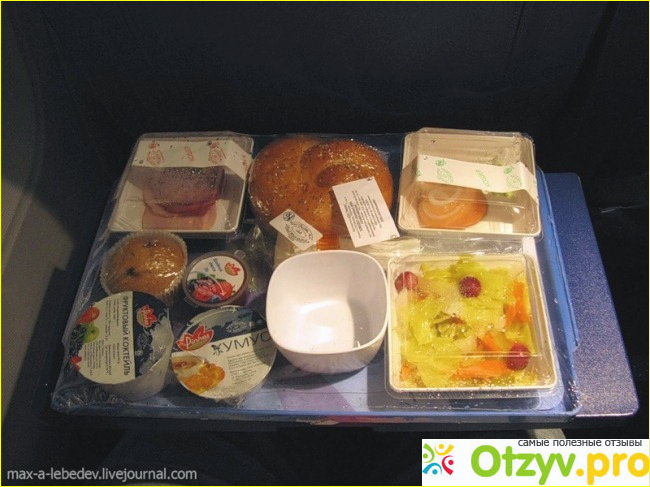 На рейсах я у них неоднократно пробовала и обеды и завтраки, и скажу, что да, это не ресторанная пища, но и самолет - не ресторан, поэтому как для такого то еда на твердую четверку. У меня никогда не было с ней проблем, не было отравлений как иногда некоторые в отзывах пишут. Все нормально и съедобно. Напитки на выбор любые. Я взяла себе и чай и вино и воду, в общем все это было в неограниченных количествах.