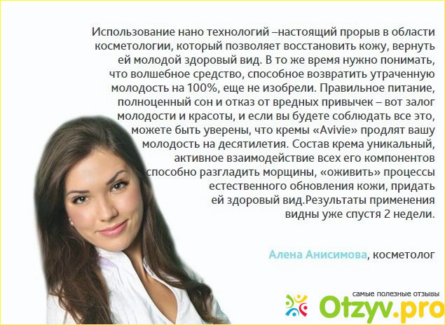 Очень довольна качеством косметики Avivie. За последний год, покупала уже порядка 5 разных образцов продукции и ничуть не пожалела о выборе. Весьма понравился пилинг-гель и анти возрастной серум для глаз, которыми пользуюсь и на данный момент.