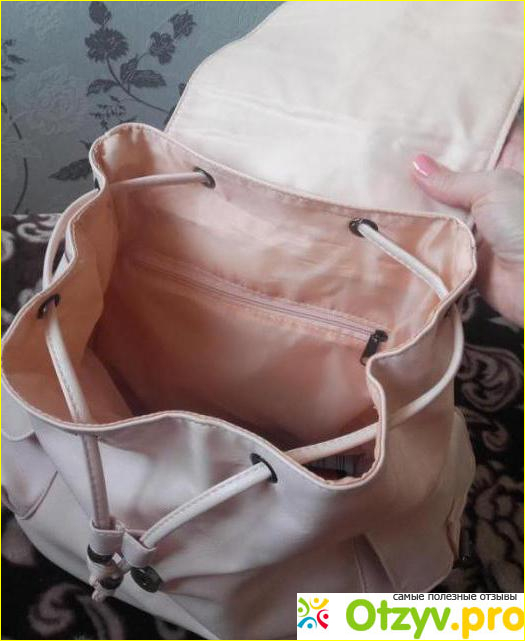 Касательно вместительности — жалоб у меня нет: в рюкзачок «Мадина» влезает как моя обширная косметичка, так и мой обед на работу)). Удобно то, что внутри сумки есть два кармашка: он закрывается на молнию, а второй — маленький — идеальный для того, чтобы хранить в нем свой мобильный телефон.