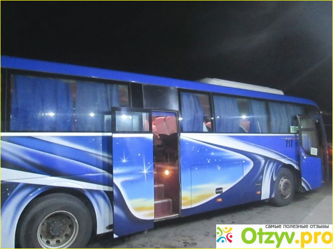 Отправляется он где-то в 10 вечера и около 10 часов едет 500 километров пути. В дороге точно была одна остановка для посещения туалета и неплохого придорожного кафе. На границе все довольно непредсказуемо и ее проходят ночью и рано утром.