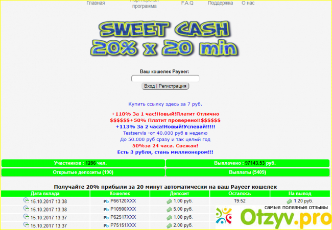 Вот со следующим сайтом знаком я лично (я как то уже писал о нем), хотя утверждается что он открылся только вчера. Вот здесь я сделал мизерный депозит по моему 6 рублей, прошло 20 минут, и они сначала повисли в режиме обработке, а потом вовсе пропали, в итоге выплату не получил.