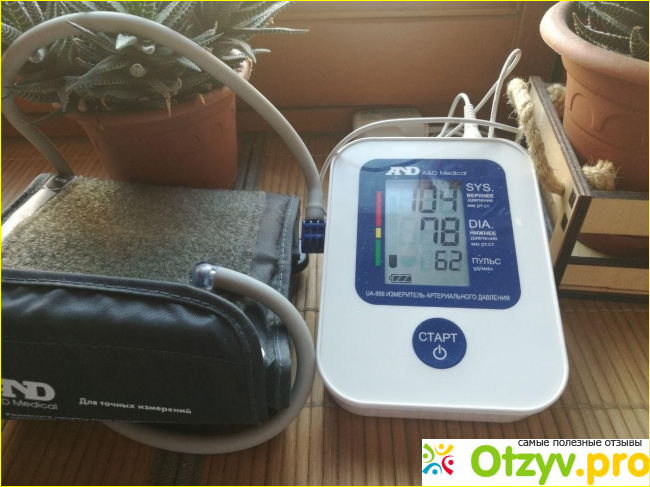 AND UA-888 пользуюсь недавно, ничего плохого сказать не могу. Работает исправно, без глюков, зависаний, или непроизвольных перезагрузок, помимо основных функций, имеется индикатор аритмии. Показания высвечиваются на большой цветной дисплей, цифры четко видны.