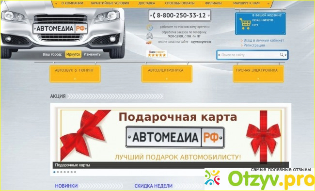 Запашная Ольга. На данном сайте заказала видеорегистратор, долго искала по другим сайтам определённую модель и вот нашла только в этом интернет-магазине плюсом ещё оказалась вполне адекватная цена. Сделала заказ и оператор перезвонил буквально через пол часа после заказа. Хотя и было написано что под заказ, но они уже созвонились с поставщиком и узнали , что данный товар есть в наличии и его мне скоро доставят. Получила его в скором времени в пункте выдачи, доставка была совсем не дорогая. Видеорегистратор был без повреждений, хорошо упакован. В общем покупкой довольна. У магазина минус только один - там не очень понятно устроен личный кабинет, невозможно глянуть истории изменений статусов заказов. Товар давно получила и оплатила уже как пять дней, а в личном кабинете всё стоит статус "Отправлено". Но к качеству товара и его доставке это не относится, поэтому могу смело рекомендовать данный магазин, а мелочные недостатки есть у всех. Главное что бы они были только мелкие :)).
