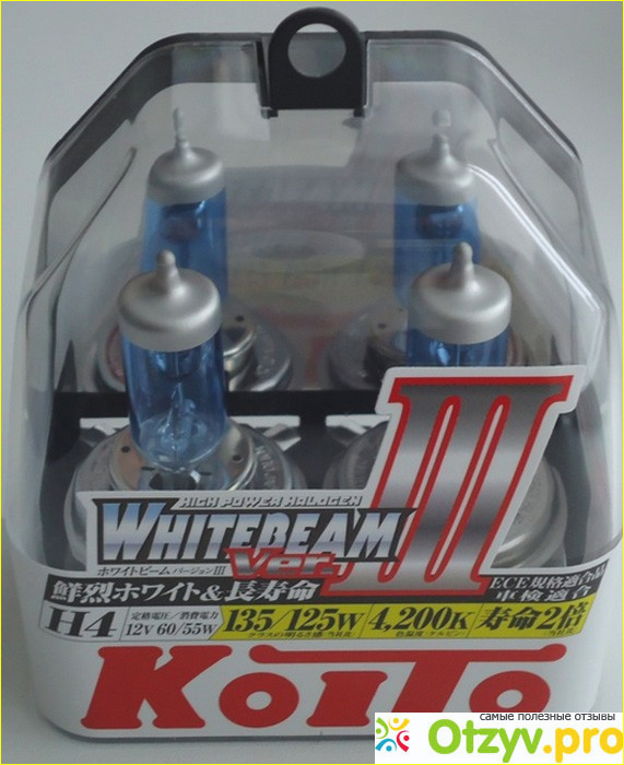 До этого пользовался OSRAM Bilux 60/55W. Germany. Цвет у этих ламп обычный бело-желтых тонов, освещенность была яркая и равномерная, благодаря скорее-всего качественной оптике. На KOITO Whitebeam 3 H4 60/55W.(135/125W/) выбор решили остановить по совету в Ялтинском автоделе, выбрав вариант с цветовой температурой 4200 К.