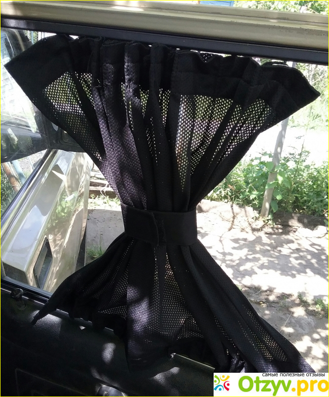 Наш автомобиль стал отличаться от других таких же автомобилей такого же цвета наличием оригинальных и элегантных шторок на задних боковых окнах. Шторки изготовлены из ткани в виде сеточки. На верхней и нижней части шторок аккуратно пришиты бегунки. Шторки только не закрывают заднюю часть бокового заднего окна, но это не страшно. Очень удобно, что шторки можно расправить и все окно будет закрыто. Если в этом нет необходимости, то шторку можно собрать по-середине, соединив при помощи липучки.