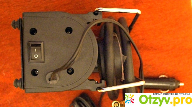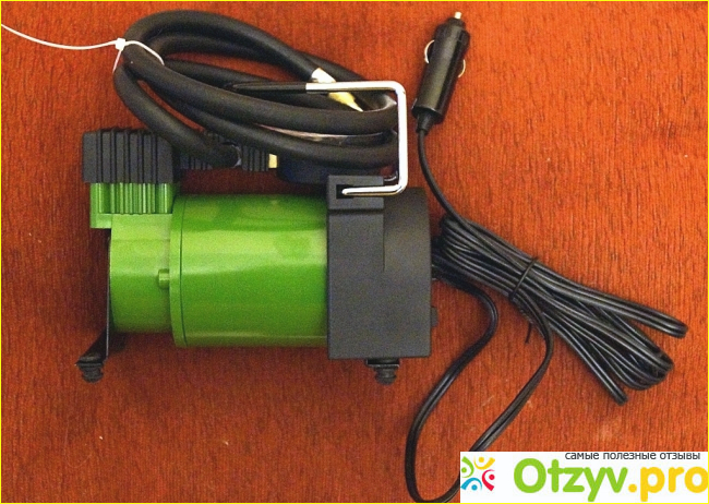 Работает он практически бесшумно, а для снятия показаний измерения он оборудован довольно крупным манометром с большими хорошо читаемыми цифрами. К корпусу компрессора подходят электрический кабель питания, который имеет длину три метра и воздушный шланг, длина которого 1 метр. Этого вполне хватает, чтобы без труда накачать все четыре колеса легкового автомобиля.