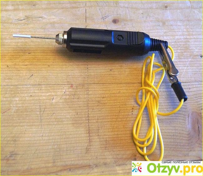 С другой стороны к корпусу прикреплен электрический провод с удобным зажимом типа « крокодил», длина которого составляет один метр.
