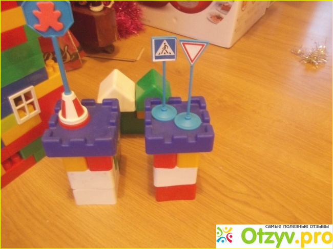 Детали конструктора выполнены из прочной пластмассы. Края обработаны и нет ничего, что может травмировать ребенка. Цена зависит от количества деталей и колеблется в пределах 90-200грн. Я считаю, что на сегодняшний днь, это невысокая цена для хорошей игрушки.