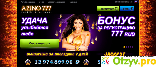 Добрый день, уважаемый посетитель моего отзыва. Сегодня мы с вами поговорим про очередное казино под названием Азино 777. Многие пользователи, я в том числе, повелись на то, что при регистрации вам на счет ложат бонусные 777 рублей, на которые вы можете сразу же играть.