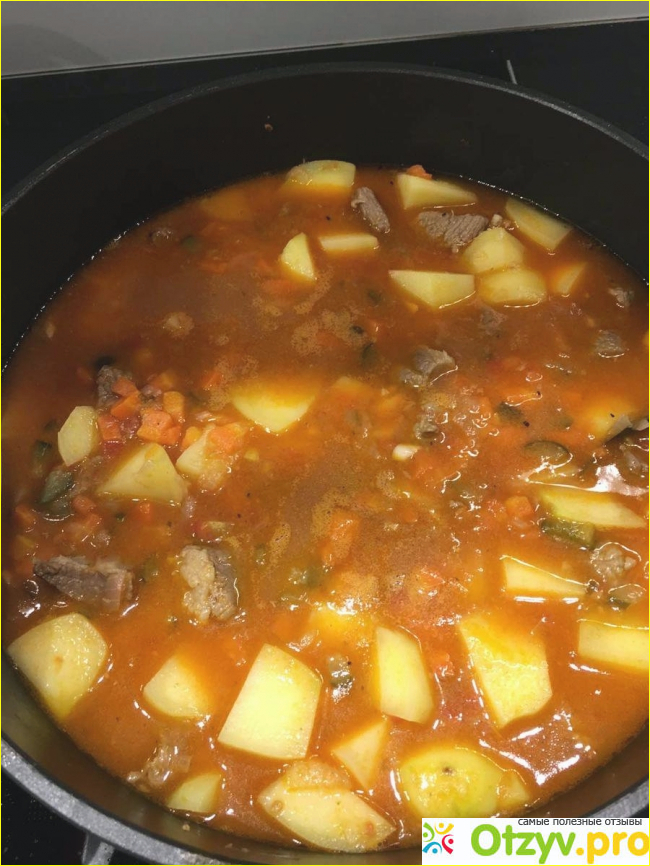 Говядина мягкая, картошка сочная, но при этом не рассыпается. Итак, сам рецепт: нарезаю средний картофель на 4 части, кубиками, закладываю на дно мультиварки. Нарезаю говядину мелкими длинными кусочками и обжариваю на сковородке. Предварительно добавляю в мясо столовую ложку соевого соуса, чуть солю, перчу. Жарю на подсолнечном масле. Обжариваю буквально 5 минут, чтобы мясо сверху прожарилось. Кладу мясо сверху на картошку. Натираю морковь, мелко нарезаю лук и обжариваю на сковородке, также закладываю в мультиварку. Нарезаю продолговатыми кусочками соленые огурцы, мелко нарезанный помидор, предварительно сняв шкурку и добавляю в мультиварку. Добавляю в мультиварку воды, чтобы почти прикрывала картошку с мясом, добавляю чуть-чуть вегетты, соли, перца. Ставлю мультиварку в режим скороварки-мясо на 50 минут. Приятного аппетита!