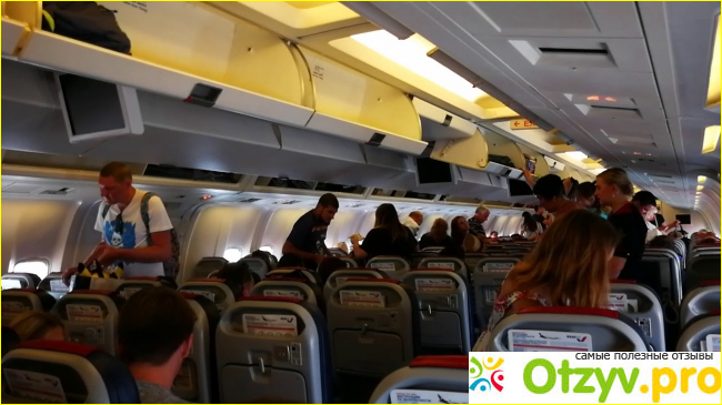 На входе в самолет нас встречали очень приветливые и улыбчивые бортпроводники, которые показывали пассажирам где их места. И когда все пассажиры сели, бортпроводники помогли людям, которые ещё не разместили ручную кладь, разместить ее у себя над головой в специальных ящиках.